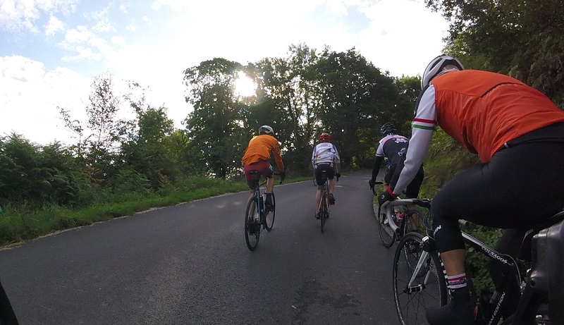 Après cette première grosse difficulté, il fallait avaler les bosses de Dinéault et Châteaulin, avant de s'attaquer au deuxième gros morceau de la matinée: Menez Quelerc'h. Le retour par Quéméneven devait ensuite conduire nos courageux cyclistes au pied de la Montagne Locronan: dernière ascension jusqu'à la Chapelle Ar Sonj, avant de redescendre vers Plogonnec où les organisateurs les recevaient avec une boisson et un sandwich bien mérités.